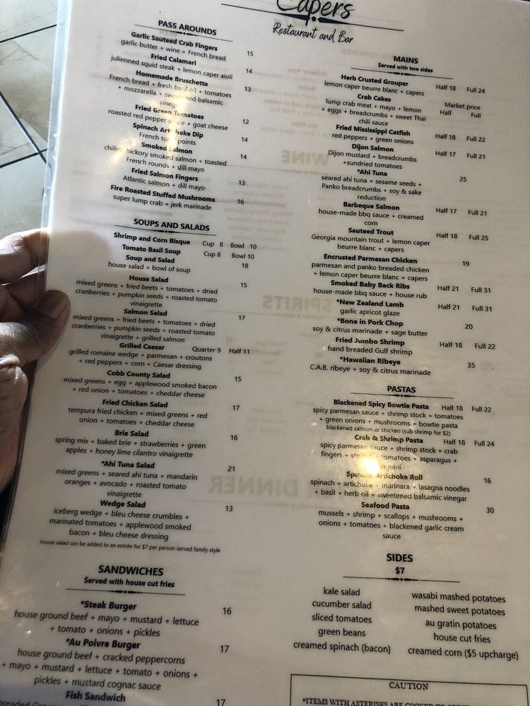“ Capers was exceptional. Their menu is sophisticated and the food is extremely flavorful omg it was so good. I recommend the crab fingers. I wish I lived near the Kennesaw area so I could visit more often, but Ill definitely indulge when Im in town. ”